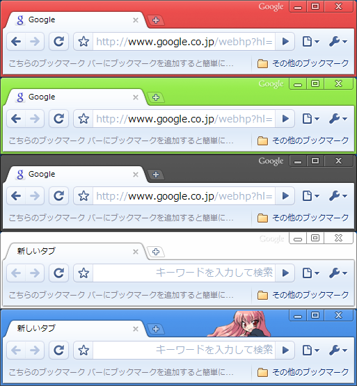 Google Chrome のテーマ / スキンの適用方法とサンプル。